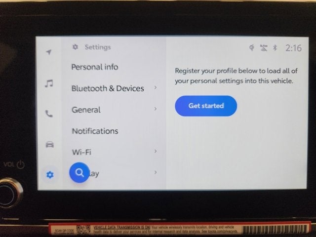 44. Use only if aware of circumstances surrounding vehicle it is legal safe to do so (e.g., do not remotely start a gas engine vehicle in an enclosed space or if vehicle is occupied by a child). Remote Connect services vary by vehicle and are subject to change at any time without notice. Services depend on 4G network availability, a cellular connection and GPS signal. Without any one or more of these things, operability may be limited or precluded. Further, if and when 4G network changes or is discontinued, or the underlying technology required to support service becomes obsolete, then the services will not work and will need to be discontinued. Digital Key also requires Bluetooth® connectivity. Not available on manual transmissions. Services require account registration through Toyota app and acceptance of Connected Services Terms of Use at toyota.com/content/dam/toyota/privacyvts/pdf/connected-services-terms-use.pdf and Master Data Consent. Data charges may apply. For Toyota’s Connected Services’ vehicle-generated data collection, use, sharing, and retention practices and agreements, see toyota.com/support/privacy-notice/. Trial period begins on original purchase or lease date of new vehicle. Paid subscription required after trial (if applicable). Terms of Use apply.