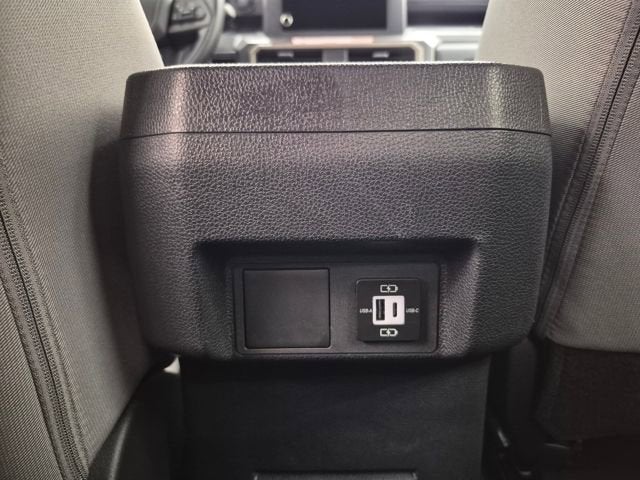 Dual illuminated rear center console-mounted USB charging ports.